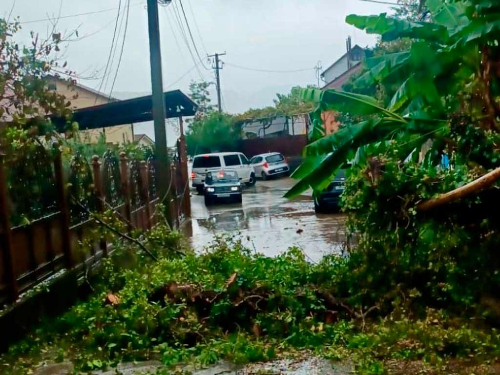 Сообщается о нескольких случаях падения деревьев на дороги в Хостинском и Лазаревском районах. Например, одно дерево полностью перегородило проезд на трассе «Дагомыс – Солохаул» возле остановки «Бетонный мост». Спасатели оперативно устраняют подобные происшествия.
