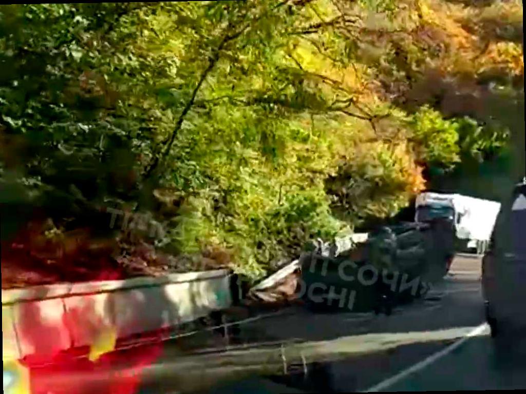 Сегодня днём произошла авария на трассе «Джубга — Сочи». На повороте между посёлками Шепси и Магри автомобиль перевернулся и оказался на крыше. Событие попало в объектив регистратора и было опубликовано в телеграм-канале «ДТП Сочи».