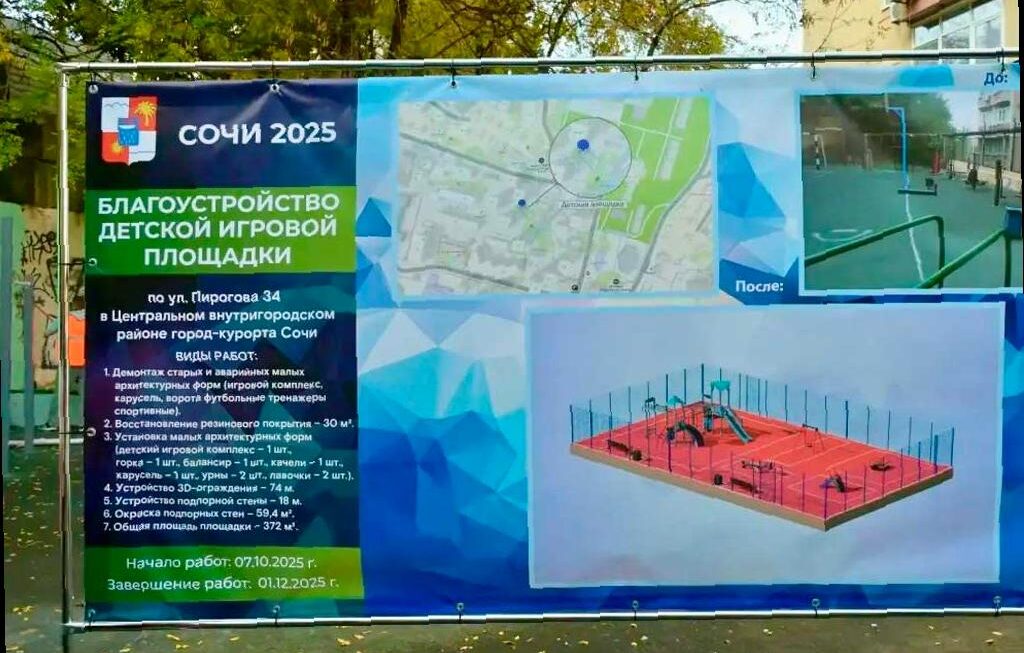 Детскую площадку на улице Пирогова в центре Сочи откроют в декабре
